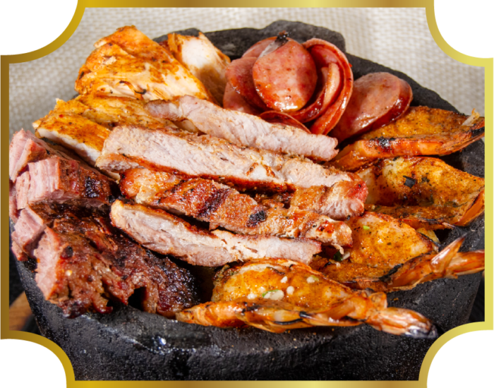 A Combination of Steak, Chicken, Shrimp, Pork, Sausage.Served w/ Charro…